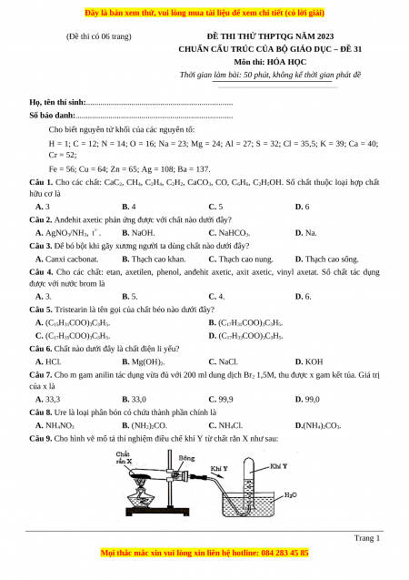 CHUẨN CẤU TRÚC CỦA BỘ GIÁO DỤC – ĐỀ 31 Môn thi: HÓA HỌC