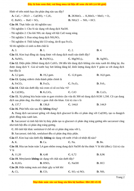 Câu 11. Kim loại đồng tác dụng được với dung dịch muối nào dưới đây? A. NaNO3. B. Fe(NO3)2. C. Mg(NO3)2. D. AgNO3.