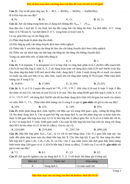 Câu 24. X, Y và Z là 3 peptit đều mạch hở