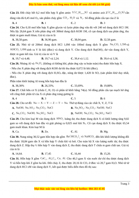 Câu 23. Đốt cháy hết 0,2 mol hỗn hợp X gồm amin và amino axit Z cần