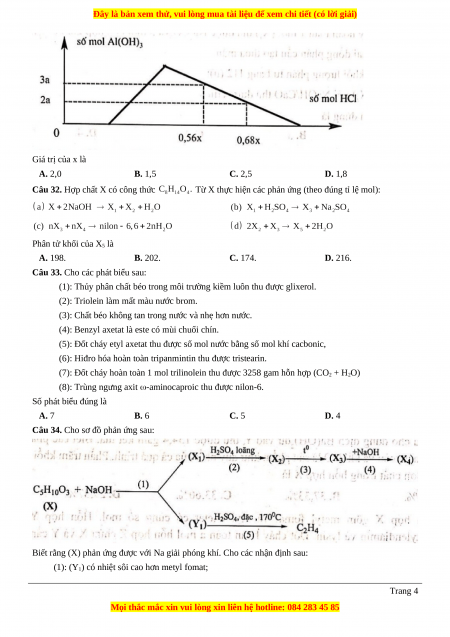 Câu 32. Hợp chất X có công thức Từ X thực hiện các phản ứng (theo đúng tỉ lệ mol):