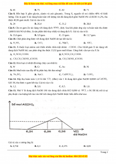 Câu 21. Cho dãy các kim loại: Na, Ca, Li, K, Fe. Số kim loại kim loại kiềm là: