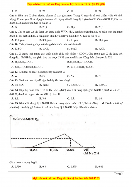 Câu 8. Hỗn hợp X gồm glyxin, alanin và axit glutamic. Trong X, nguyên tố oxi chiếm 40% về khối