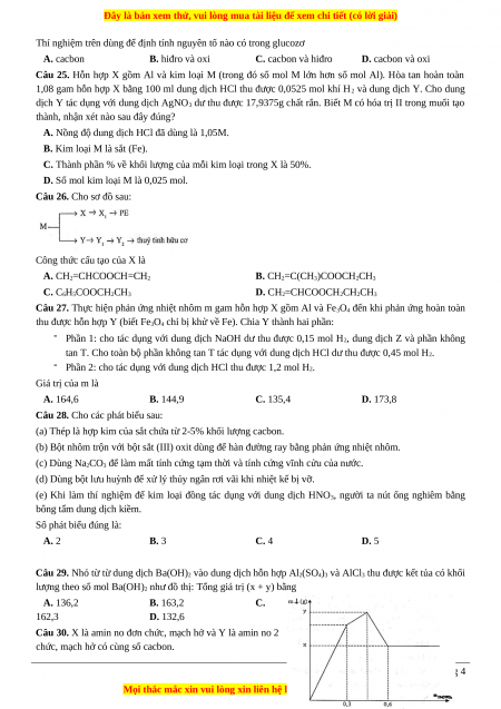 Câu 25. Hỗn hợp X gồm Al và kim loại M (trong đó số mol M lớn hơn số mol Al). Hòa tan hoàn toàn