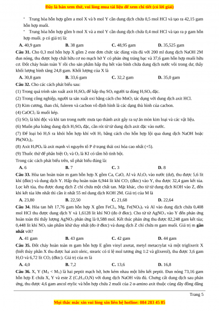 Câu 20. Hỗn hợp X chứa chất A (C5H16O3N2) và chất B (C4H12O4N2) tác dụng với dung dịch NaOH vừa