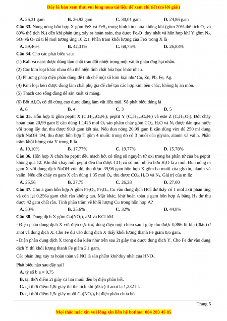Câu 1. Cho các dung dịch riêng lẻ mỗi chất sau : KCl, CuSO4, Al(NO3)3, Pb(NO3)2, HCl, Fe(NO3)3,