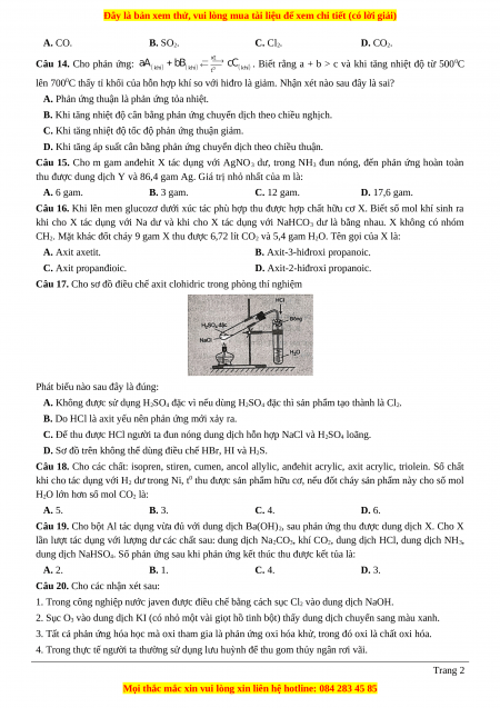 Câu 16. Khi lên men glucozơ dưới xúc tác phù hợp thu được hợp chất hữu cơ X. Biết số mol khí sinh ra