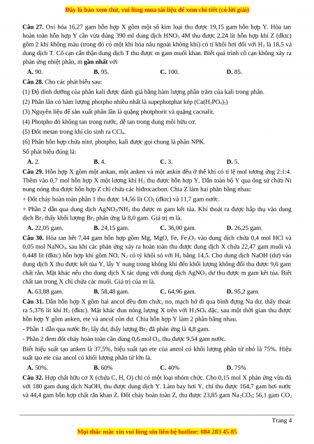 Câu 27. Oxi hóa 16,27 gam hỗn hợp X gồm một số kim loại thu được 19,15 gam hỗn hợp Y. Hòa tan