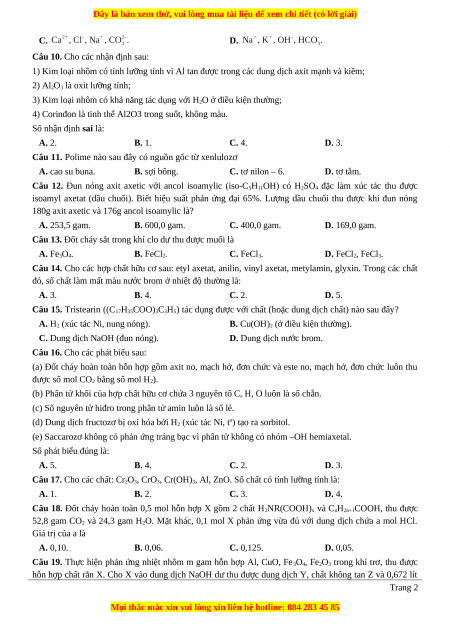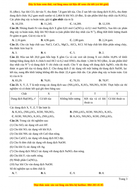 Số thí nghiệm tạo ra đơn chất là A. 7. B. 6. C. 9. D. 8. Trang 3