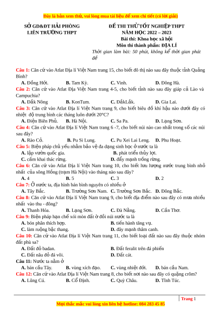 ệ đ xe ể m chi ti t ế (có l i ờ gi i ả ) S Ở GD&ĐT H I Ả PHÒNG Đ Ề THI TH Ử T T Ố NGHI P Ệ THPT LIÊN TRƯ NG Ờ THPT NĂM H C Ọ 2022 – 2023 Bài thi: Khoa h c ọ xã h i ộ Môn thi thành ph n ầ : Đ A Ị LÍ Th i