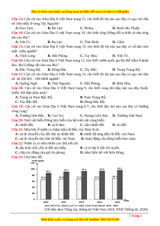 B. Đất feralit trên đá phi n ế C. Đất nâu đ ỏ đá vôi. D. Đất cát. Câu 11: Nư c ớ ta n m ằ ở A. bán cầu Tây. B. vùng xích đạo. C. vùng nhi t ệ đ i. ớ D. bán cầu Nam. Câu 12: Căn c ứ vào Atlat Đ a ị lí Vi t ệ Nam trang 8, cho bi t ế n i ơ nào sau đây có qu ng ặ crôm? A. Lũng Cú. B. Cổ Định. C. Quỳ Châu. D. Tĩnh Túc. Trang 1 M i