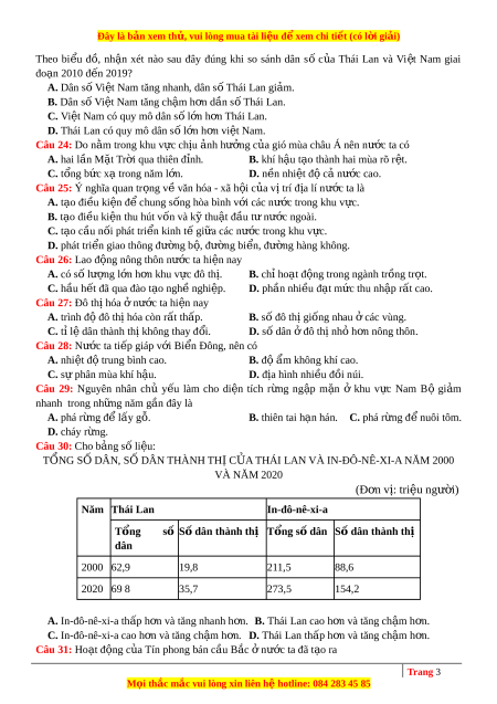 C. In-đô-nê-xi-a cao h n ơ và tăng ch m ậ h n ơ . D. Thái Lan th p ấ h n ơ và tăng ch m ậ h n ơ . Câu 31: Hoạt đ ng ộ c a ủ Tín phong bán c u ầ B c ắ ở nư c ớ ta đã t o ạ ra Trang 3 M i