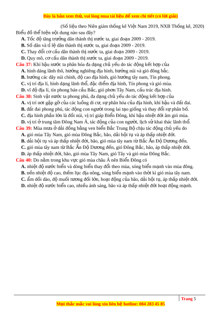 ệ đ xe ể m chi ti t ế (có l i ờ gi i ả ) A. th i ờ ti t ế lạnh m ẩ ở mi n ề B c ắ , m a ư kéo dài cho Nam Trung B . ộ B. th i ờ ti t ế nắng ẩm ở mi n ề B c ắ , mùa khô cho Nam B , ộ Tây Nguyên. C. mùa khô sâu s c ắ cho ven bi n ể Trung B , ộ Nam B , ộ Tây Nguyên. D. th i ờ ti t ế lạnh khô ở mi n ề B c ắ , mùa khô cho Nam B , ộ Tây Nguyên. Câu 32: M t ậ đ ộ dân s ố nư c ớ ta có s ự chênh l c ệ h gi a ữ các vùng ch ủ y u ế do A. trình đ ộ phát triên kinh t , ế nhân t ố t ự nhiên.