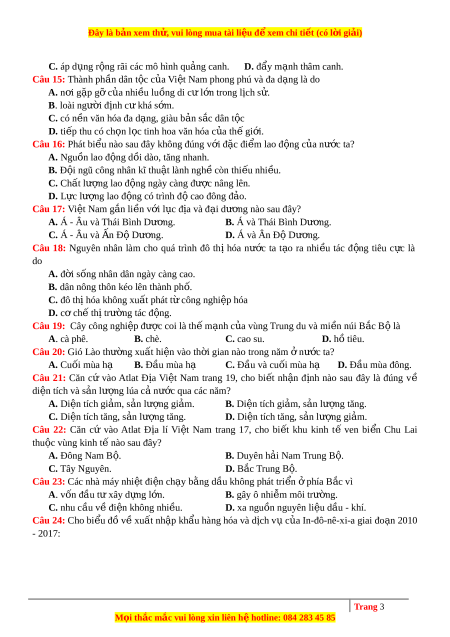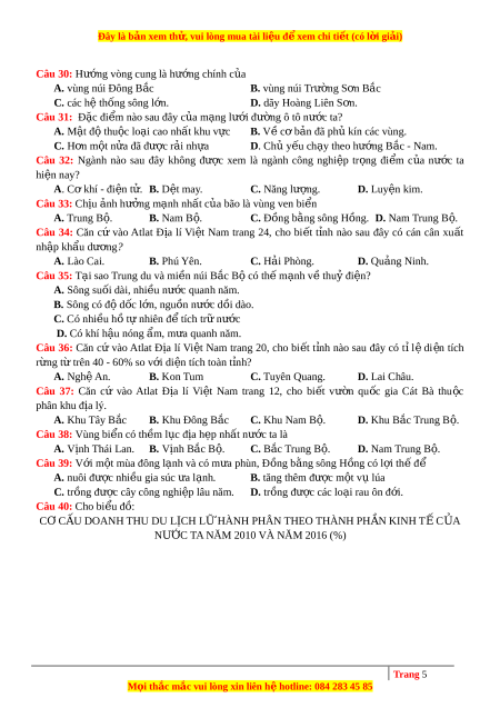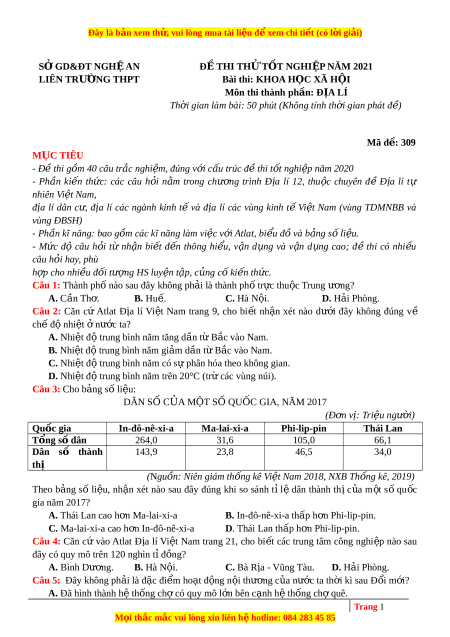 Đây là bản xem th , vu ử i lòng mua tài li u ệ đ xe ể m chi ti t ế (có l i ờ gi i ả ) S Ở GD&ĐT NGH Ệ AN Đ Ề THI TH Ử T T Ố NGHI P Ệ NĂM 2021 LIÊN TRƯ NG Ờ THPT Bài thi: KHOA H C Ọ XÃ H I Ộ Môn thi thành ph n ầ : Đ A Ị LÍ Th i
