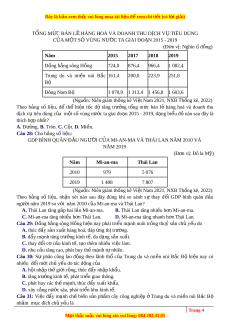 Ủ MI-AN-MA VÀ THÁI LAN NĂM 2010 VÀ NĂM 2019 (Đ n ơ vị: Đô la M ) ỹ Năm Mi-an-ma Thái Lan 2010 979 5 076 2019 1 408 7 807 (Nguồn: Niên giám th ng ố kê Vi t ệ Nam 2021, NXB Th ng ố kê, 2022) Theo b ng ả số li u, ệ nh n