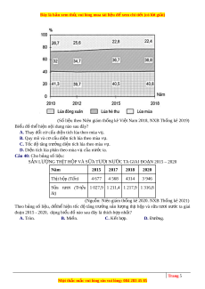 B. thu hút nguồn vốn đ u ầ t , ư tăng thu nh p, ậ b o ả v ệ môi trư ng. ờ C. nâng cao m c ứ s ng ố , phát huy th ế m nh ạ , tăng trư ng ở kinh t . ế D. tạo vi c ệ làm, đ i ổ m i ớ phân b ố s n ả xu t, ấ khai thác h p ợ lí bi n. ể Câu 39: Cho bi u ể đồ v ề di n