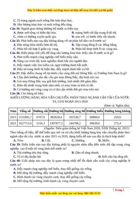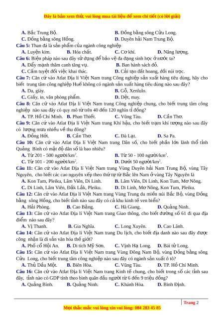 Đây là bản xem th , vu ử i lòng mua tài li u ệ đ xe ể m chi ti t ế (có l i ờ gi i ả ) A. Ch ế đ ộ nư c ớ theo mùa. B. Nhi u ề nư c ớ , giàu phù sa. C. Mạng lư i ớ sông ngòi dày đ c ặ . D. Nhi u ề nư c ớ quanh năm. Câu 29: Chất lư ng ợ lao đ ng ộ c a ủ nư c ớ ta ngày càng đư c ợ nâng lên nh ờ A. công nghi p ệ và du l c ị h ở nông thôn đư c ợ phát tri n ể m nh ạ . B. nhi u ề doanh nghi p ệ , công ty nư c ớ ngoài đ u ầ t ư vào nư c ớ ta. C. phát tri n ể thêm nhi u ề các trư ng ờ đào t o ạ ngh ề và cao đ ng. ẳ
