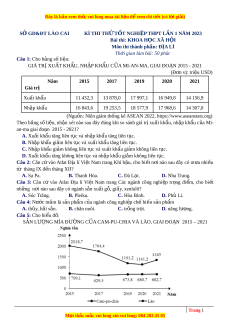 Đề thi thử Địa lí Sở Lào Cai năm 2023