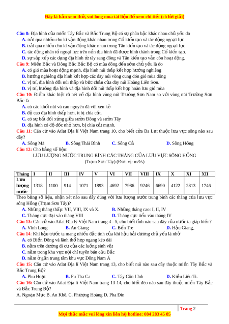 Đây là bản xem th , vu ử i lòng mua tài li u ệ đ xe ể m chi ti t ế (có l i ờ gi i ả ) Câu 8: Đ a ị hình c a ủ mi n ề Tây B c ắ và B c ắ Trung B c ộ ó s phâ ự n b c ậ khác nhau ch y ủ u do ế A. trải qua nhi u c ề hu kì vận đ ng khá ộ c nhau trong Cổ ki n t ế ạo và tác đ ng ngo ộ ại l c ự
