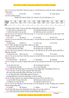 Câu 4: Gió mùa Tây Nam khi th i ổ vào B c ắ B n ộ ư c ớ ta di chuy n t ể heo hư ng ớ A. tây nam B. đông nam. C. tây bắc D. đông bắc Câu 5: Cho bảng s l ố i u: ệ NHI T Ệ Đ