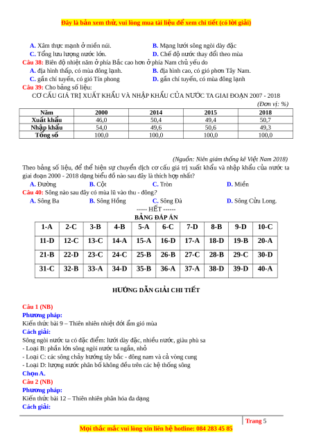 Câu 37: Nguyên nhân chủ yếu nào sau đây làm cho sông ngòi nư c ớ ta có hàm lư ng ợ phù sa l n? ớ Trang 4 M i ọ thắc m c