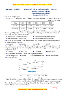 mía. D. Khai thác d u, ầ khí. Câu 5: Cho bi u ể đồ: TỔNG S N Ả PH M Ẩ TRONG NƯ C Ớ C A Ủ THÁI LAN VÀ VI T Ệ NAM, GIAI ĐO N Ạ 2015 - 2021