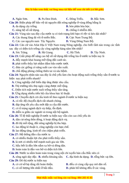 Đây là bản xem th , vu ử i lòng mua tài li u ệ đ xe ể m chi ti t ế (có l i ờ gi i ả ) A. Ngân S n. ơ B. Pu Đen Đinh. C. Đông Tri u. ề D. B c ắ S n. ơ Câu 20: Bi n ệ pháp đ ể b o ả v ệ tài nguyên đ t ấ nông nghi p ệ ở vùng đ ng ồ b ng ằ là