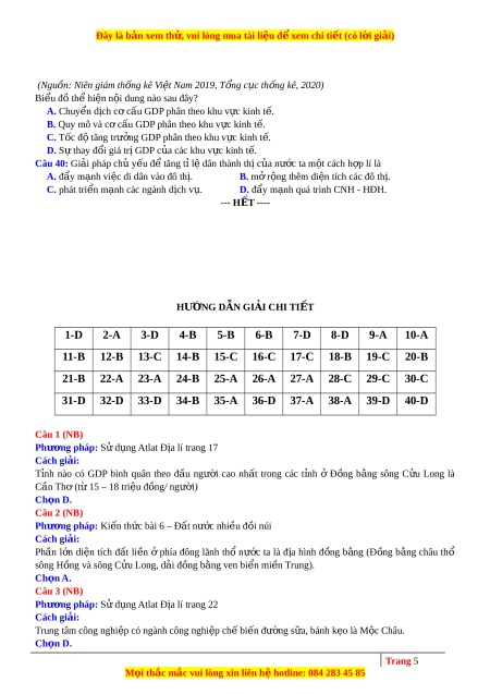 Câu 33: Nguyên nhân nào sau đây tác đ ng ộ m nh ạ nh t ấ đ n ế vi c ệ gi m ả tỉ su t ấ gia tăng dân s ố t ự nhiên n ở ư c ớ ta hi n ệ nay? A. Cơ cấu dân s gi ố à, tu i ổ k t ế hôn ngày càng tăng. B. C c ơ ấu dân s gi ố à, m c ứ s ng c ố a ủ ngư i ờ dân tăng. Trang 3 M i ọ thắc m c