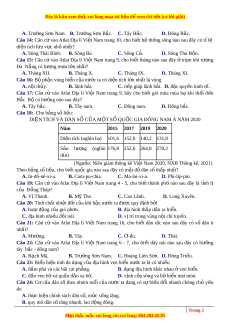 Câu 5: Vùng núi nằm gi a ữ sông H ng ồ và sông C ả là A. Trư ng ờ S n ơ B c ắ . B. Tây B c ắ . C. Đông Bắc. D. Trư ng ờ S n ơ Nam. Câu 6: Hai b ể d u ầ khí có tr ữ lư ng ợ l n ớ nh t ấ hi n ệ đang đư c ợ khai thác ở nư c ớ ta là