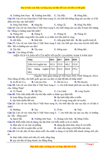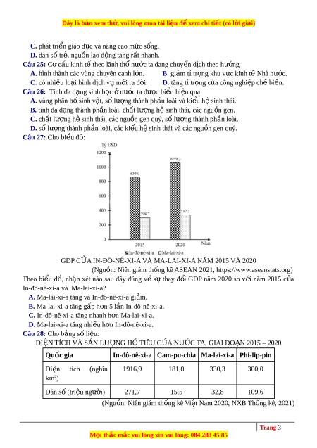 Đây là bản xem th , vu ử i lòng mua tài li u ệ đ xe ể m chi ti t ế (có l i ờ gi i ả ) C. phát tri n ể giáo d c ụ và nâng cao m c ứ s ng. ố D. dân số tr , ẻ ngu n ồ lao đ ng ộ tăng r t ấ nhanh. Câu 25: C ơ cấu kinh t ế theo lãnh th ổ nư c ớ ta đang chuy n ể d c ị h theo hư ng ớ