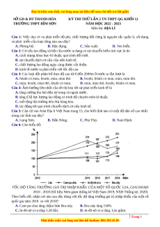 Đề thi thử Địa lí trường Bỉm Sơn - Thanh Hóa lần 1 năm 2023