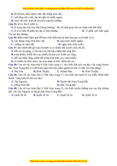 D. trẻ, gia tăng gi m ả . Câu 22: Nư c ớ ta là c a ử ngõ ra bi n ể c a ủ nhi u ề qu c ố gia do A. có h ệ thống đư ng ờ sắt xuyên Á. B. ti p ế giáp các đ o ả ở phía Đông Nam. C. ở rìa Đông c a ủ bán đ o ả Đông Dư ng. ơ D. ở ngã t ư đư ng ờ hàng không qu c ố tế M i