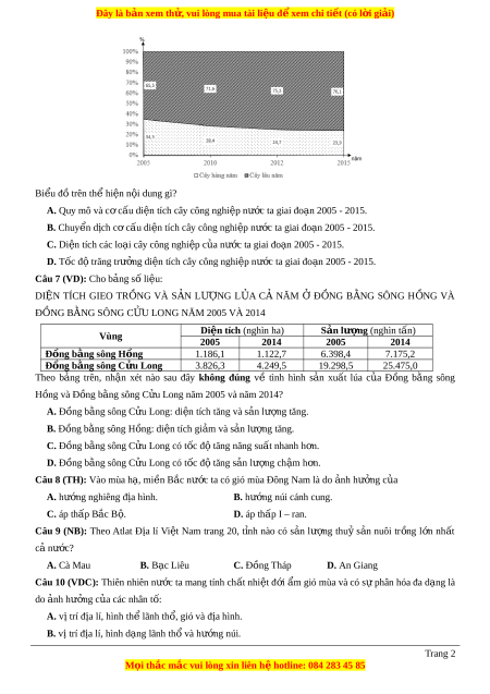 Câu 1 (NB): Theo Atlat Đ a ị lí Vi t ệ Nam trang 18, đ t ấ tr ng ồ cây lư ng ơ th c ự , th c ự ph m ẩ và cây hàng năm có di n t ệ ích l n ớ nhất nh ở ng vùng nà ữ o? A. Đ ng b ồ ằng sông H ng, Đ ồ ng b ồ ằng sông C u L ử ong. B. Đ ng b ồ ằng sông C u L ử