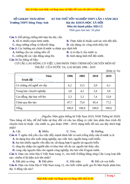 Đây là bản xem th , vu ử i lòng mua tài li u ệ đ xe ể m chi ti t ế (có l i ờ gi i ả ) A. Khu Trung Trung B ộ B. Khu Bắc Trung B ộ C. Khu Tây B c ắ D. Khu Đông B c ắ Câu 7: L i ợ thế l n ớ nh t ấ giúp ho t ạ đ ng ộ nuôi tr ng ồ th y ủ s n ả nư c ớ ta đư c ợ chú tr ng ọ h n ơ khai thác là A. chất lư ng ợ nguồn thủy sản cao h n. ơ B. s n