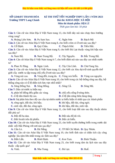 - Đề thi thử THPT Quốc Gia Địa lí trường THPT Lang Chánh - Thanh Hóa bản word có lời giải chi tiết.