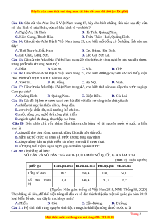 ừ , canh tác đúng kĩ thu t ậ trên đ t ấ d c ố . B. xử lí các t ổ ch c ứ , cá nhân x ả nư c ớ không đúng quy đ nh ị . C. tăng cư ng ờ đầu tư phát tri n ể các công trình x ử lí nư c ớ th i. ả D. sử dụng ti t ế ki m ệ , ngăn ng a ừ gây ô nhi m ễ ngu n ồ nư c ớ . Câu 20: Cho bảng s ố li u: ệ SỐ DÂN VÀ S Ố DÂN THÀNH TH Ị C A Ủ M T Ộ S Ố QU C Ố GIA NĂM 2019 (Đ n ơ vị: Tri u ệ ngư i) ờ Quốc gia