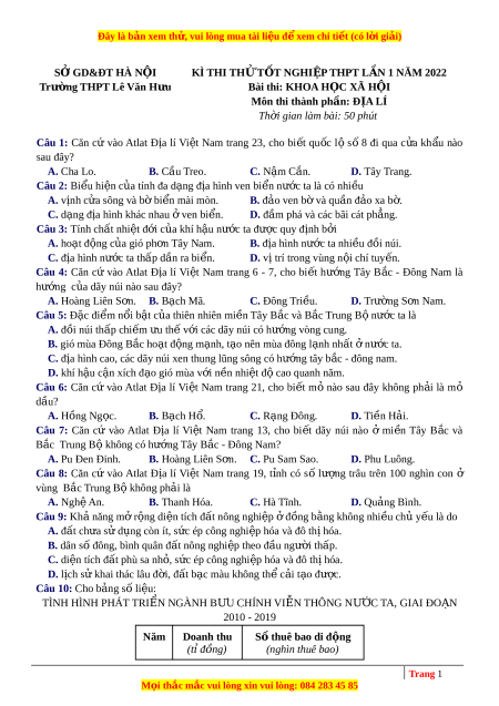 Đây là bản xem th , vu ử i lòng mua tài li u ệ đ xe ể m chi ti t ế (có l i ờ gi i ả ) S Ở GD&ĐT HÀ N I Ộ KÌ THI TH Ử T T Ố NGHI P Ệ THPT L N Ầ 1 NĂM 2022