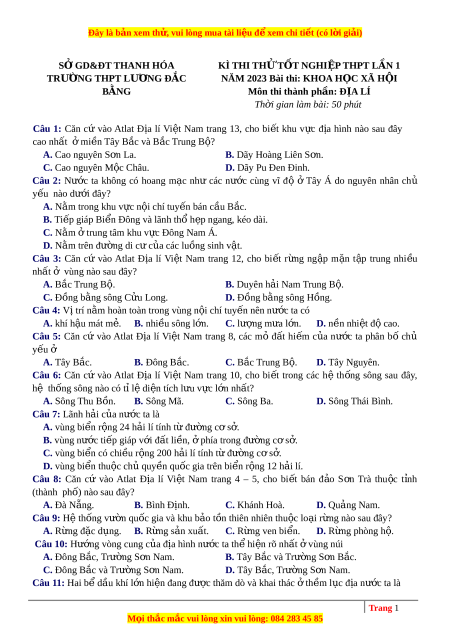 - Đề thi thử THPT Quốc Gia Địa lí trường THPT Lương Đắc Bằng - Thanh Hóa bản word có lời giải chi tiết.