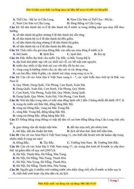 Đây là bản xem th , vu ử i lòng mua tài li u ệ đ xe ể m chi ti t ế (có l i ờ gi i ả ) B. thuốc tr ừ sâu d ư th a ừ trong nông nghi p. ệ C. chất thải c a ủ các ho t ạ đ ng ộ du l c ị h bi n. ể D. nư c ớ thải công nghi p, ệ ch t ấ th i ả sinh ho t. ạ Câu 21: Căn c ứ vào Atlat Đ a ị lí Vi t ệ Nam trang 18, c ơ c u ấ giá tr ịs n ả xu t ấ c a ủ ngành thu ỷ s n ả năm 2007 so v i ớ năm 2000 tăng A. 9,0 %. B. 1,1 %. C. 10,1 %. D. 10,0 %.