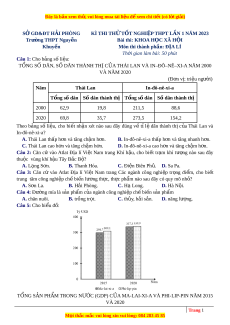 C. thủy, hải sản. D. năng lư ng. ợ Câu 5: Cho bi u ể đồ: TỔNG S N Ả PH M Ẩ TRONG NƯ C Ớ (GDP) C A