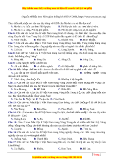 Câu 30: Ngành giao thông v n ậ t i ả đư ng ờ bi n ể nư c ớ ta hi n ệ nay A. mạng lư i ớ ph ủ r ng ộ kh p ắ c ả nư c ớ . B. ngành non tr ẻ và phát tri n ể nhanh. C. đ i ộ ngũ lao đ ng ộ có chuyên môn cao. D. vận chuy n ể nhi u ề hàng hóa xu t ấ kh u. ẩ Trang 3 M i