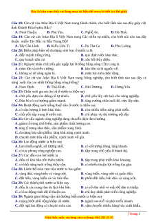 C. Đàn bò có xu hư ng ớ gi m ả m nh. ạ D. tăng cư ng ờ chăn nuôi dê, c u ừ l y ấ s a ữ . Câu 24: Hoạt đ ng ộ nuôi tr ng ồ thu ỷ s n ả ở nư c ớ ta hi n ệ nay A. có sản lư ng ợ ít h n ơ khai thác. B. còn nhi u ề ti m ề năng phát tri n. ể C. chủ y u ế tập trung ở mi n ề núi. D. chỉ ph c ụ v ụ th ịtrư ng ờ n i ộ đ a ị Câu 25: C ơ cấu ngành công nghi p ệ đang chuy n ể d c ị h theo hư ng ớ A. giảm tỉ tr ng ọ ch ế bi n, ế s n ả ph m ẩ ch t ấ lư ng ợ cao. B. tăng tỉ tr ng ọ khai thác, s n ả ph m ẩ trung bình. C. đa dạng hóa s n ả ph m, ẩ tăng kh ả năng c nh ạ tranh.