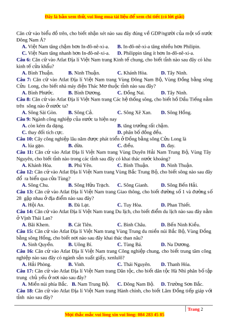 Câu 18: Căn cứ vào Atlat Đ a ị lí Vi t
