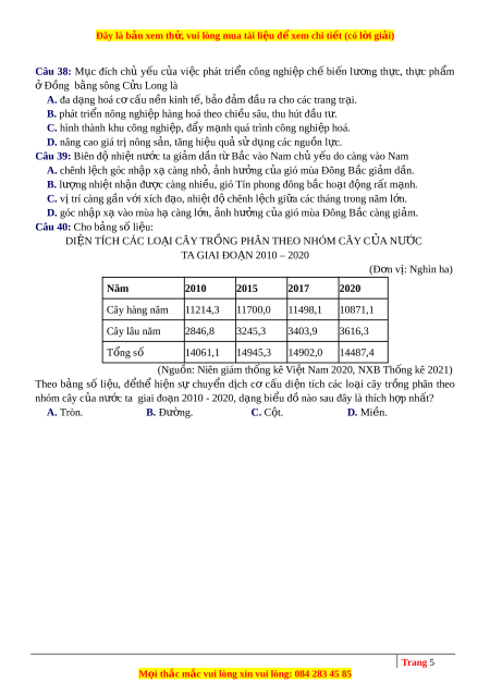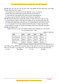 A. trồng cây theo băng. B. làm ru ng ộ bậc thang. C. xây hồ th y ủ đi n. ệ D. bón phân c i ả t o. ạ Câu 21: Vào mùa m a ư bão ở khu v c ự mi n ề núi nư c ớ ta thư ng ờ x y ả ra A. tri u ề cư ng. ờ B. ngập l t ụ . C. lũ quét. D. cháy r ng. ừ