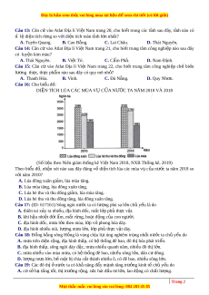 Câu 3: Căn cứ vào Atlat Đ a ị lí Vi t ệ Nam trang 9, cho bi t ế vùng khí h u ậ nào sau đây thu c ộ mi n ề khí hậu phía Bắc? A. Nam B . ộ B. Nam Trung B . ộ C. B c ắ Trung B . ộ D. Tây Nguyên. Câu 4: Căn c ứ vào Atlat Đ a ị lí Vi t ệ Nam trang 13, cho bi t ế núi nào sau đây thu c ộ mi n ề B c ắ và Đông B c ắ Bắc B ? ộ A. Phu Luông. B. Tam Đảo C. Pu Trà. D. Phanxipăng. Câu 5: Căn c ứ vào Atlat Đ a ị lí Vi t ệ Nam trang 17, cho bi t ế trung tâm kinh t ế nào sau đây thu c ộ Duyên h i ả Nam Trung B ? ộ A. Thanh Hóa B. Vinh. C. Hu . ế D. Quy Nh n ơ .