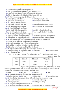 B. xây hồ tích nư c ớ . C. s ơ tán dân. D. ban hành Sách đ . ỏ Câu 30: Cho bảng s ố li u: ệ SẢN LƯ NG Ợ THỦY S N Ả NUÔI TR N Ồ G C A Ủ NƯ C Ớ TA NĂM 2010 VÀ 2018 (Đ n ơ vị: Nghìn t n) ấ Năm Cá nuôi Tôm nuôi Thủy s n ả 2010 2101,6 499,7 177,0 2018 2918,7 809,7 433,4 (Nguồn: Niên giám th ng ố kê Vi t ệ Nam 2018, NXB Th ng ố kê, 2019) Theo b ng ả số li u, ệ để thể hi n ệ cơ c u ấ s n ả lư ng ợ th y ủ s n ả nuôi tr ng ồ c a ủ nư c ớ ta năm 2010 và năm 2018, d ng ạ bi u