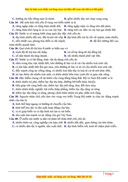 Câu 33: Vùng núi Trư ng ờ S n ơ Nam ở nư c ớ ta A. có nhi u ề cao nguyên bazan x p ế t ng. ầ B. có nhi u ề đỉnh núi cao nh t ấ c ả nư c ớ . Trang 4 M i