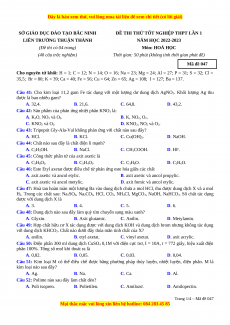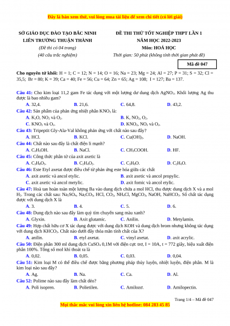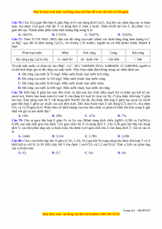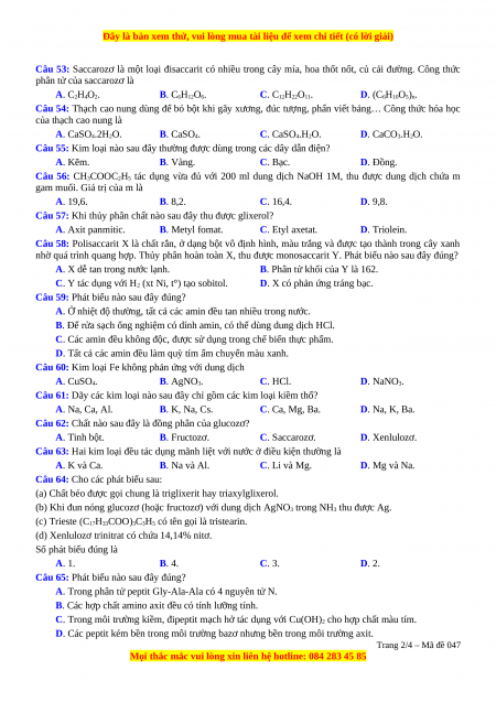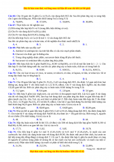 Câu 43: Tripeptit Gly-Ala-Val không phản ứng với chất nào sau đây? A. HCl. B. KCl. C. Cu(OH)2. D. NaOH.