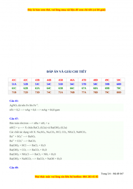 ĐÁP ÁN VÀ GIẢI CHI TIẾT