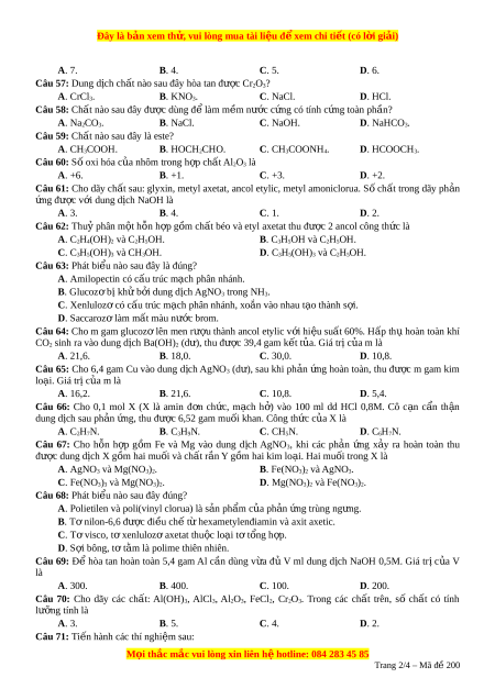 Đây là bản xem th , vu ử i lòng mua tài li u ệ đ xe ể m chi ti t ế (có l i ờ gi i ả ) A. 7. B. 4. C. 5. D. 6. Câu 57: Dung d c